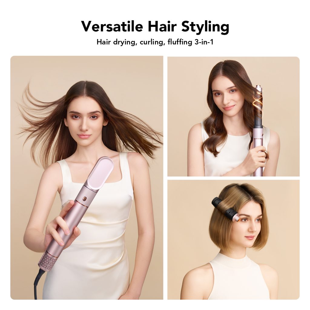 No, ovaj višenamenski stilizator kose integrira više funkcija, poput brzog sušenja, kovrčanja i raspršivanja. Sa svojim iznimno svestranim dizajnom, omogućuje vam slobodno kreiranje svih vrsta frizura koje volite, bez obzira radi li se primjerice o lepršavoj frizuri, elegantnoj s velikim kovrčama ili pak glatkoj ravnoj kosi.